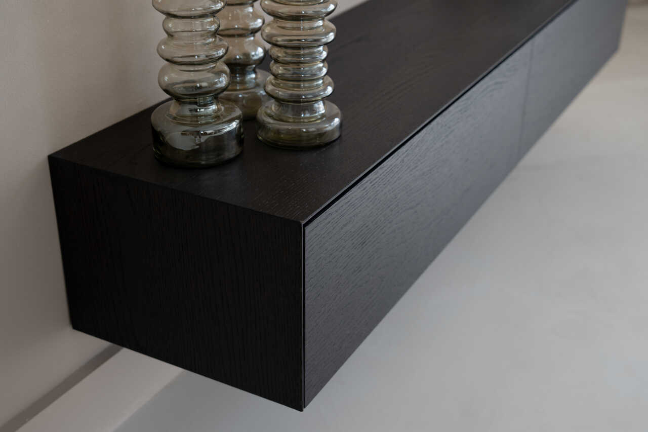 Een zwevend tv-meubel wordt meestal strak tegen de muur geplaatst en is meestal een permanente opstelling. Het is daarom verstandig om vooraf te bedenken hoe het meubel zich verhoudt tot de stopcontacten en hoe je de stekkers wilt aansluiten.