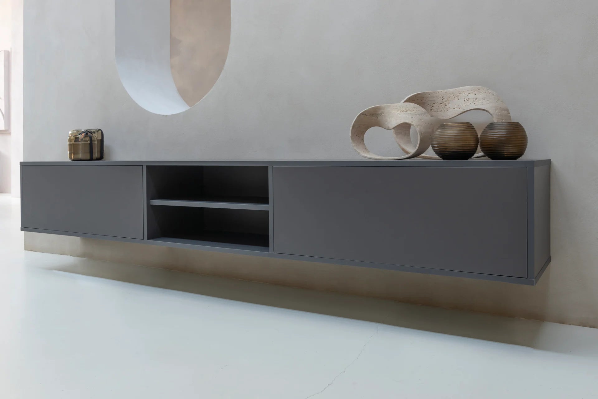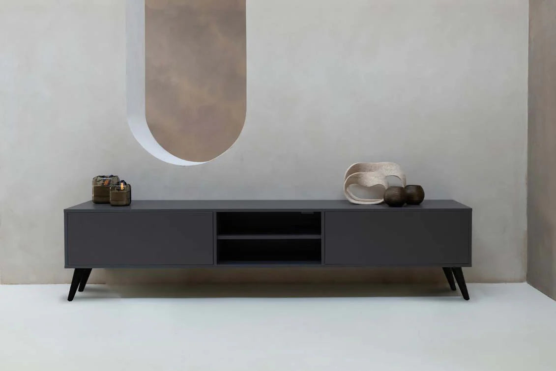 Tv-meubel Henry staat voor strak design, praktische veelzijdigheid en moderne eenvoud. Het meubel heeft een robuuste, onderhoudsvriendelijke uitstraling dankzij de hoogwaardige melamine afwerking en is volledig naar wens samen te stellen. Kies uit duurzame afwerkingen zoals: