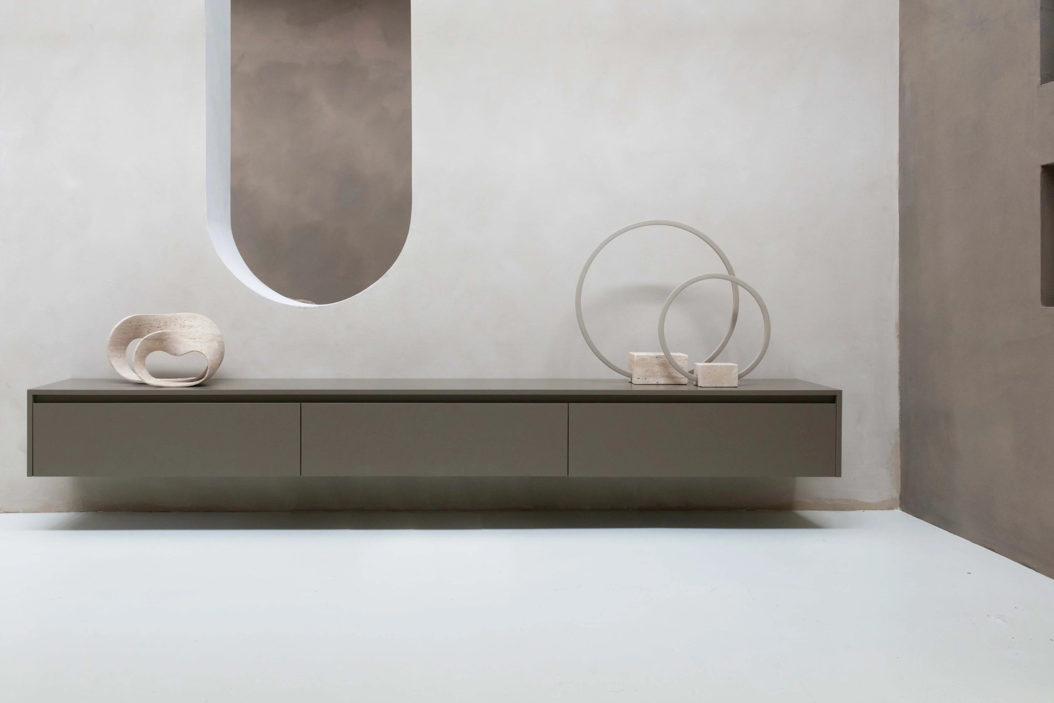 Tv-meubel Mason staat voor modern design met een krachtige, minimalistische uitstraling. Dit zwevende meubel combineert strakke lijnen met praktische mogelijkheden en is volledig naar wens samen te stellen. Kies uit hoogwaardige afwerkingen zoals: